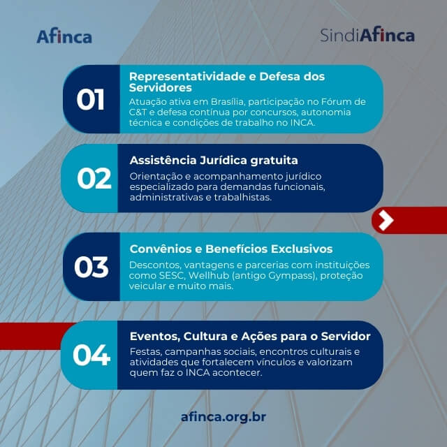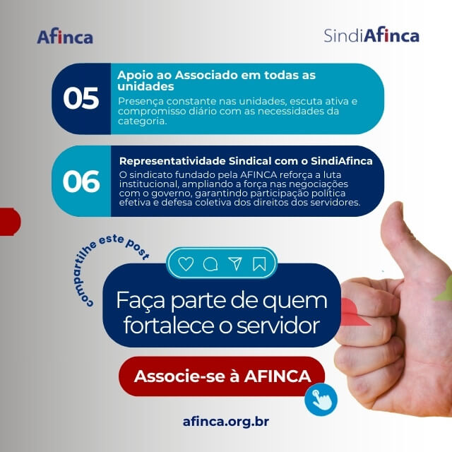 Agora, com o SindiAfinca, nossa força de representação cresce ainda mais — unindo associação e sindicato em defesa dos servidores.