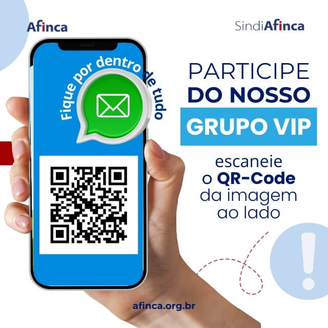 Para acompanhar todas as informações oficiais, novidades, comunicados e benefícios com agilidade e segurança, convidamos você a salvar o contato da AFINCA e participar do nosso grupo informativo no WhatsApp.