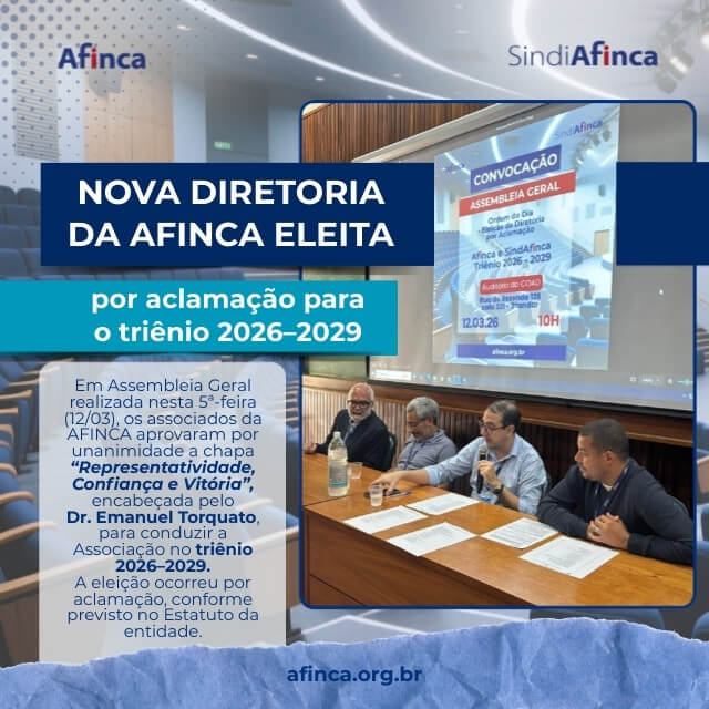 A AFINCA realizou, na manhã desta quinta-feira (12), Assembleia Geral para a eleição da Diretoria da entidade referente ao triênio 2026–2029.